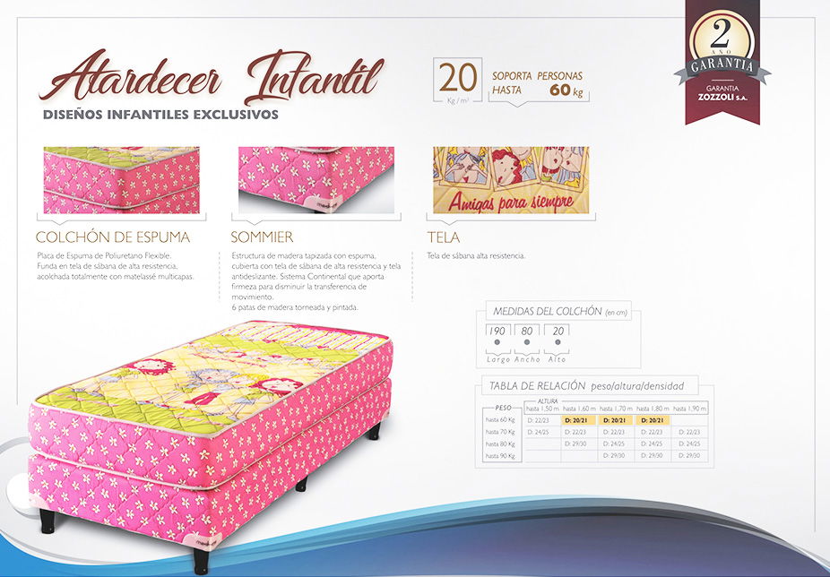 Colchón: de espuma.Tela sábana de alta resistencia matelaseada