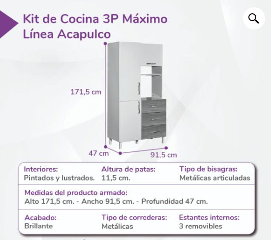 Espacio para microondas: 41 cm de alto (modificable a 60 cm) x 50 de ancho x 45 cm pro