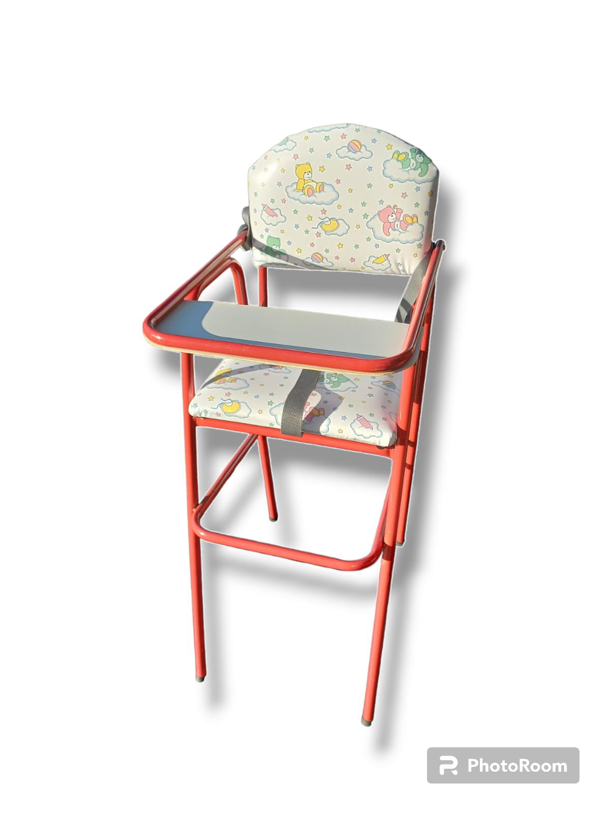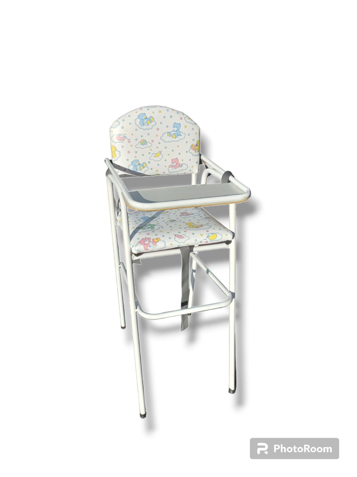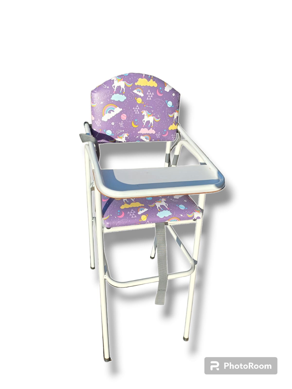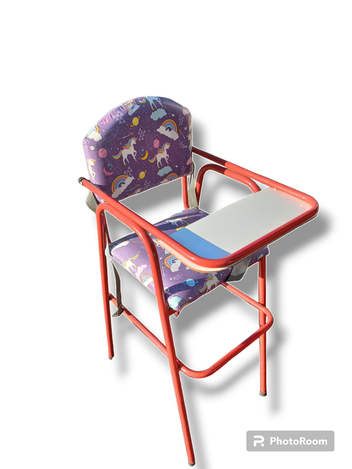 Sillita alta de cano para bebe, respaldo y asiento tapizado en cuerina.