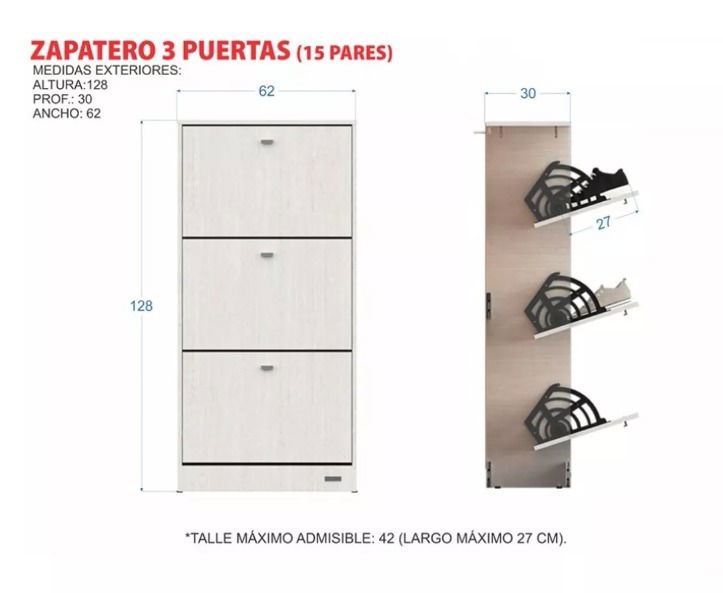 •Talle máximo 42 (largo max 27 cm)