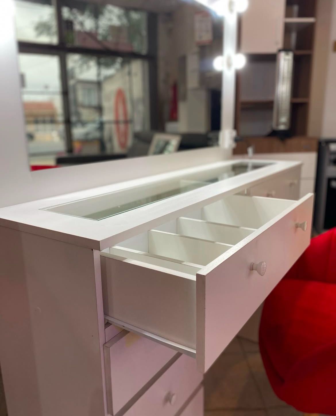 ¡Dale un toque de glamour a tu rutina de belleza con nuestro espectacular tocador de maquillaje! Este elegante mueble no solo es funcional, sino que también añade un estilo moderno a cualquier espacio.